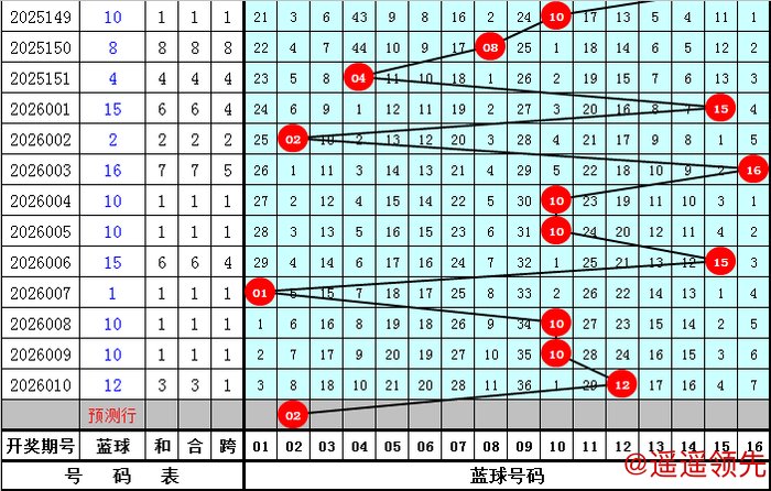 蓝球分析:上期蓝球落在第三区号码12,最近50期四区蓝球落号个数比为12:10:17:11,三区蓝球出现较多,本期预计蓝球出现在第一区,精选蓝球02。