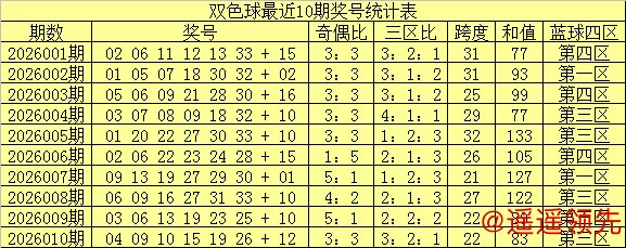 南华天第2026011期双色球区间号码个数统计分析:(红球:01-11为一区,12-22为二区,23-33为三区;蓝球:01-04为一区,05-08为二区,09-12为三区,13-16为四区)