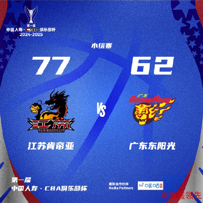 北京时间11月12日消息,CBA俱乐部杯第一轮,江苏男篮77-62击败广东男篮。